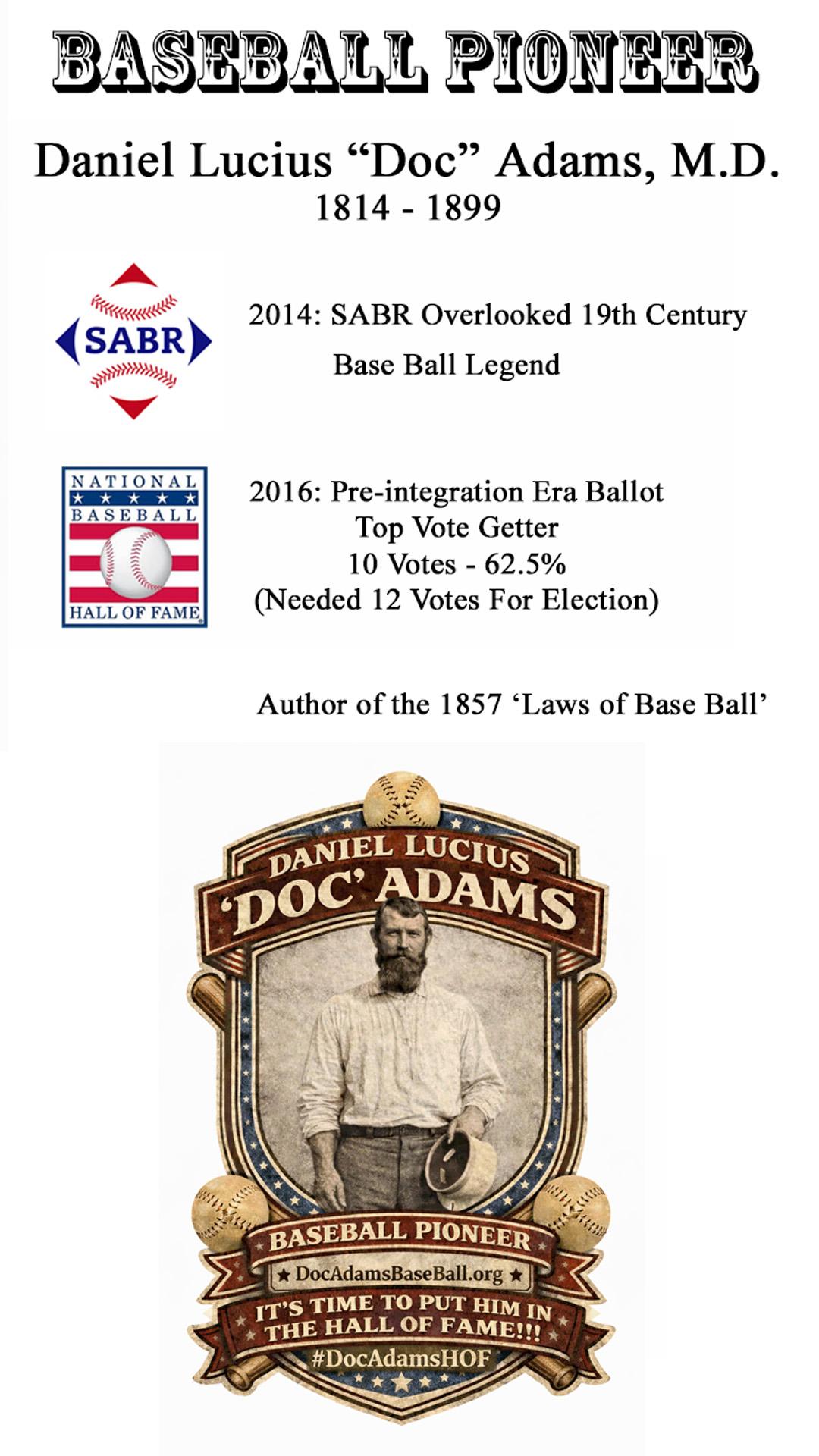 Daniel Lucius “Doc” Adams is one of the early pioneers of baseball and his contributions to the game compare favorably, and some would argue even surpass those of others recognized and enshrined in the Hall of Fame.