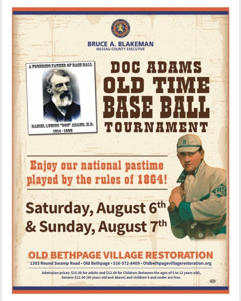 The 25th installment of the Annual Doc Adams Old Time Base Ball Festival will take place next weekend, August 6-7, at Old Bethpage Village Restoration.