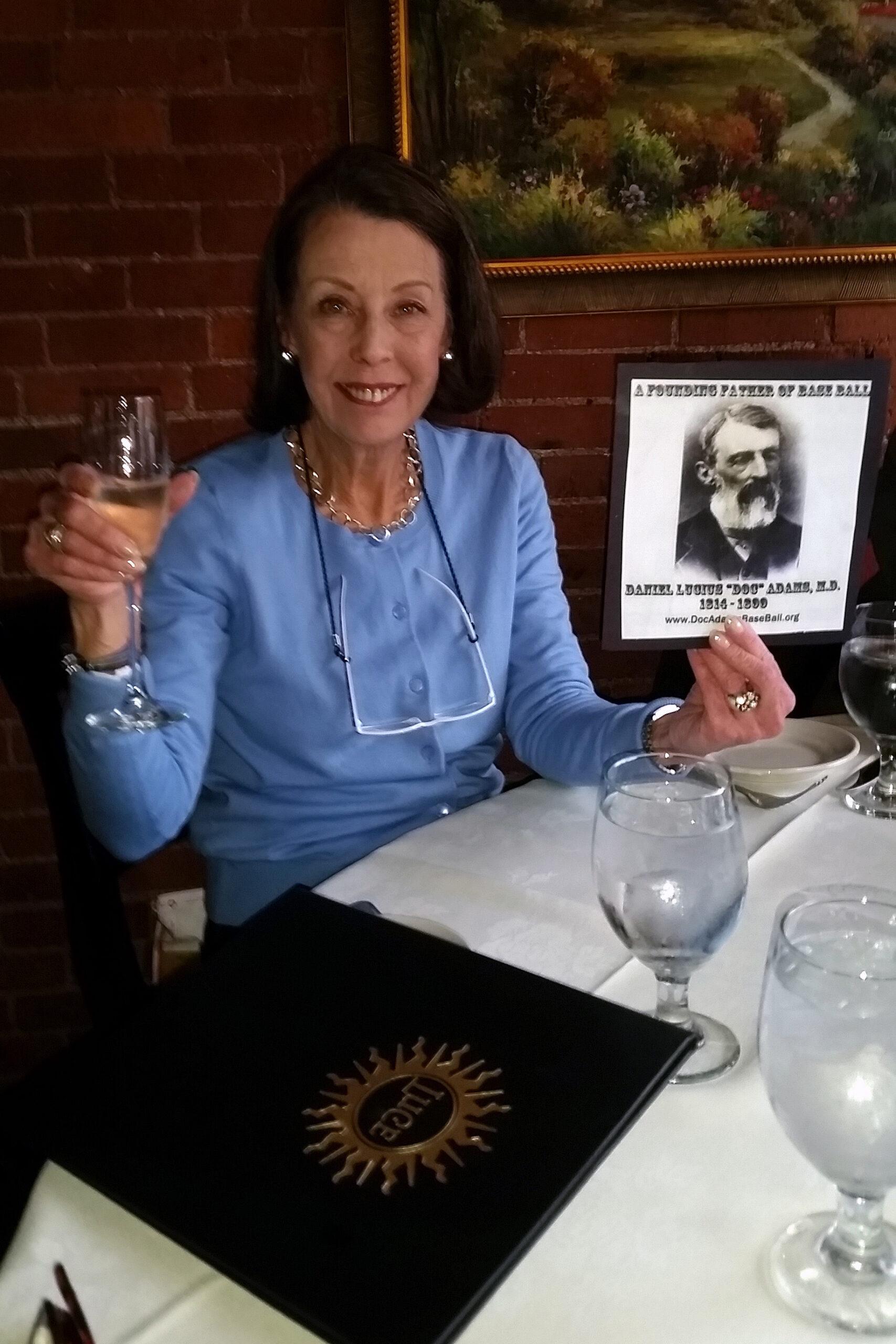 It was a great event with excellent food, champagne, and birthday cake a la mode. The Doc Adams labeled wine was to be opened when he was inducted into the Hall of Fame.
