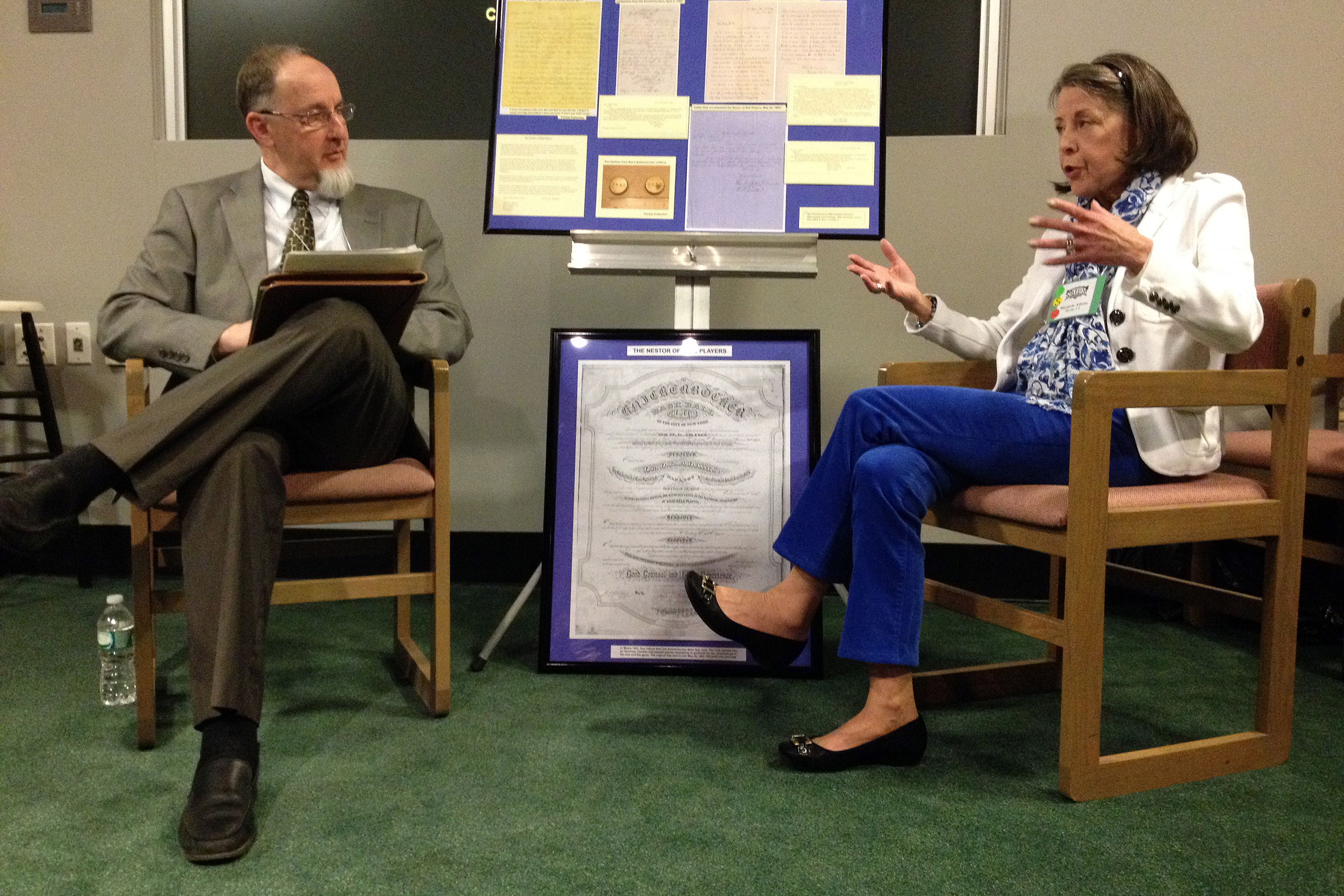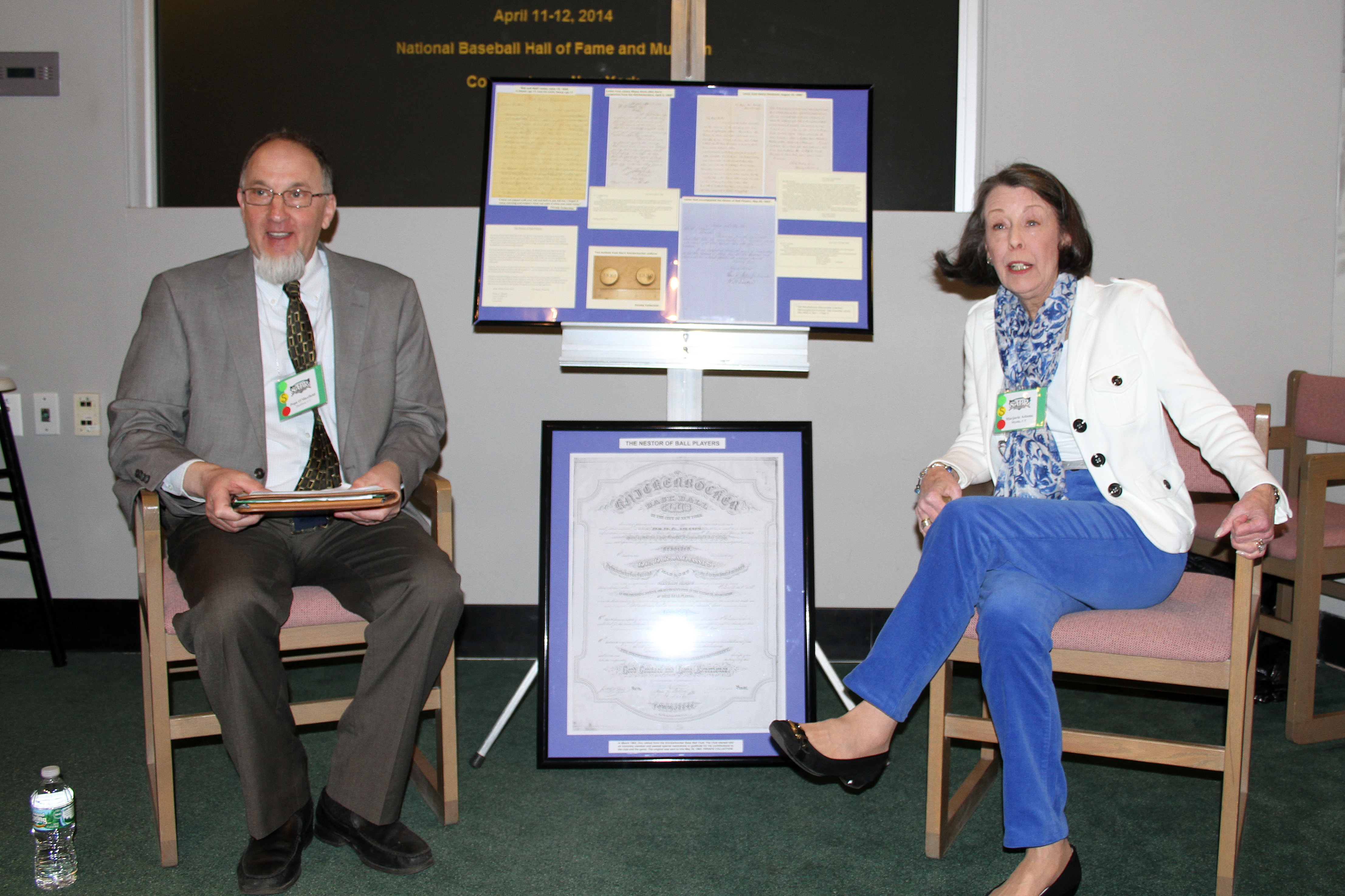 On April 12, 2014, Marjorie Adams and Gary “Pops” O’Maxfield delivered an engaging and informational presentation on Daniel Lucius “Doc” Adams and his contributions to the game of base ball. It was delivered at SABR’s 6th Annual Frederick Ivor-Campbell 19th Century Base Ball Conference in Cooperstown. Mr. O’Maxfield, Commissioner of the Friends of Vintage Base Ball, interviewed Marjorie Adams, playing the role of her great-grandfather. It was enlightening, extremely entertaining, and very well received.