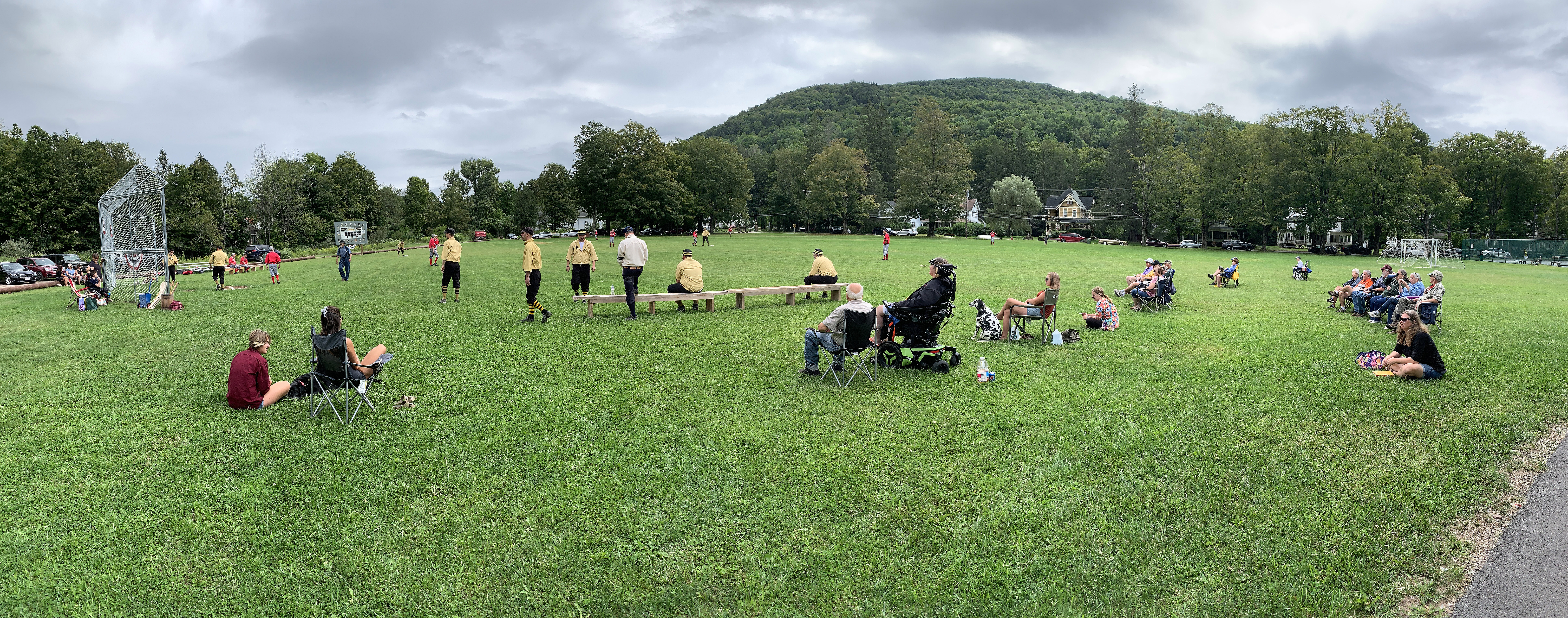 The Fleischmanns Mountain Athletic Club (M.A.C.) and the Mudville Base Ball Club, from the Boston area, played a lively and entertaining doubleheader of 1860’s style baseball. The recent heat wave broke just in time and made the day even more enjoyable for ballists and cranks alike.