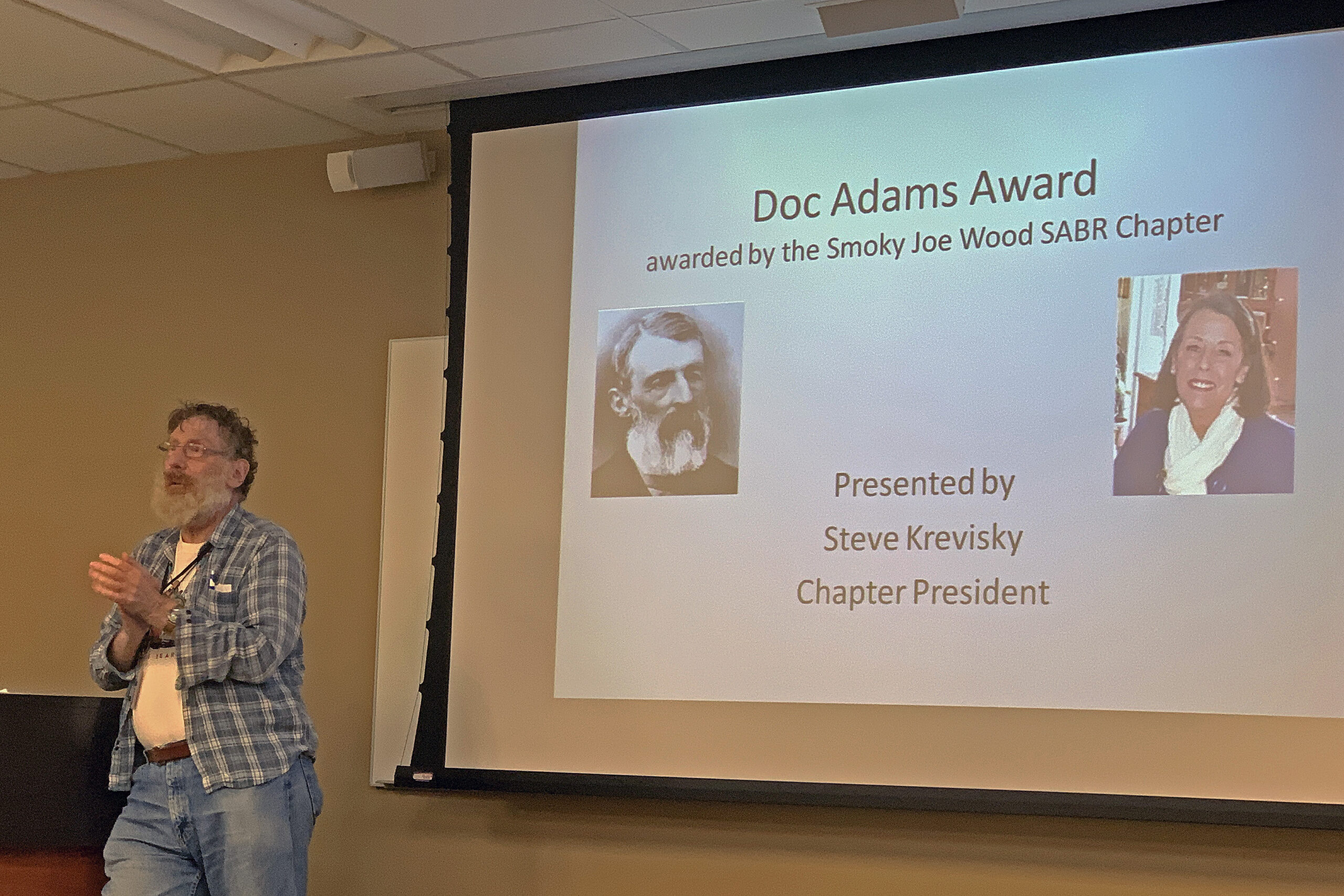The capstone of the meeting was Chapter President Steve Krevisky announcing Marjorie Adams as the recipient of the Inaugural Doc Adams Award.