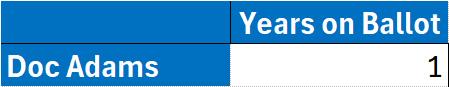 Doc Adams’ has only appeared on the 2016 Pre-Integration Era ballot. He was the top vote-getter, receiving 10 of 12 votes needed for election.