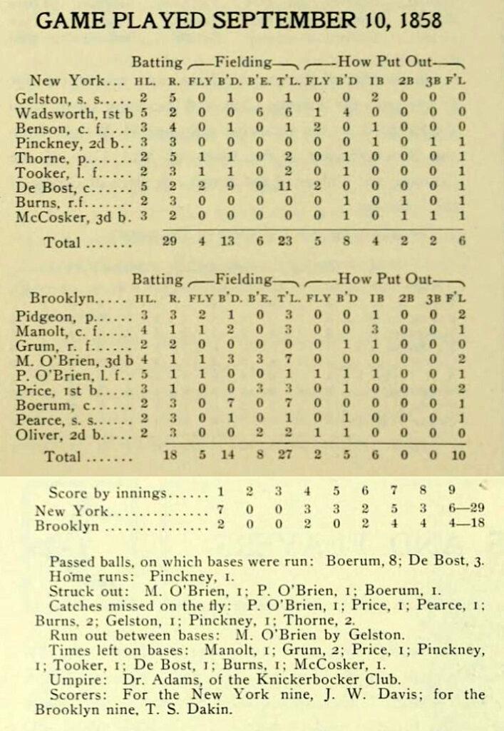 The third and deciding game was played on September, 10, 1858 and Dr. Adams of the Knickerbocker Club was the umpire.